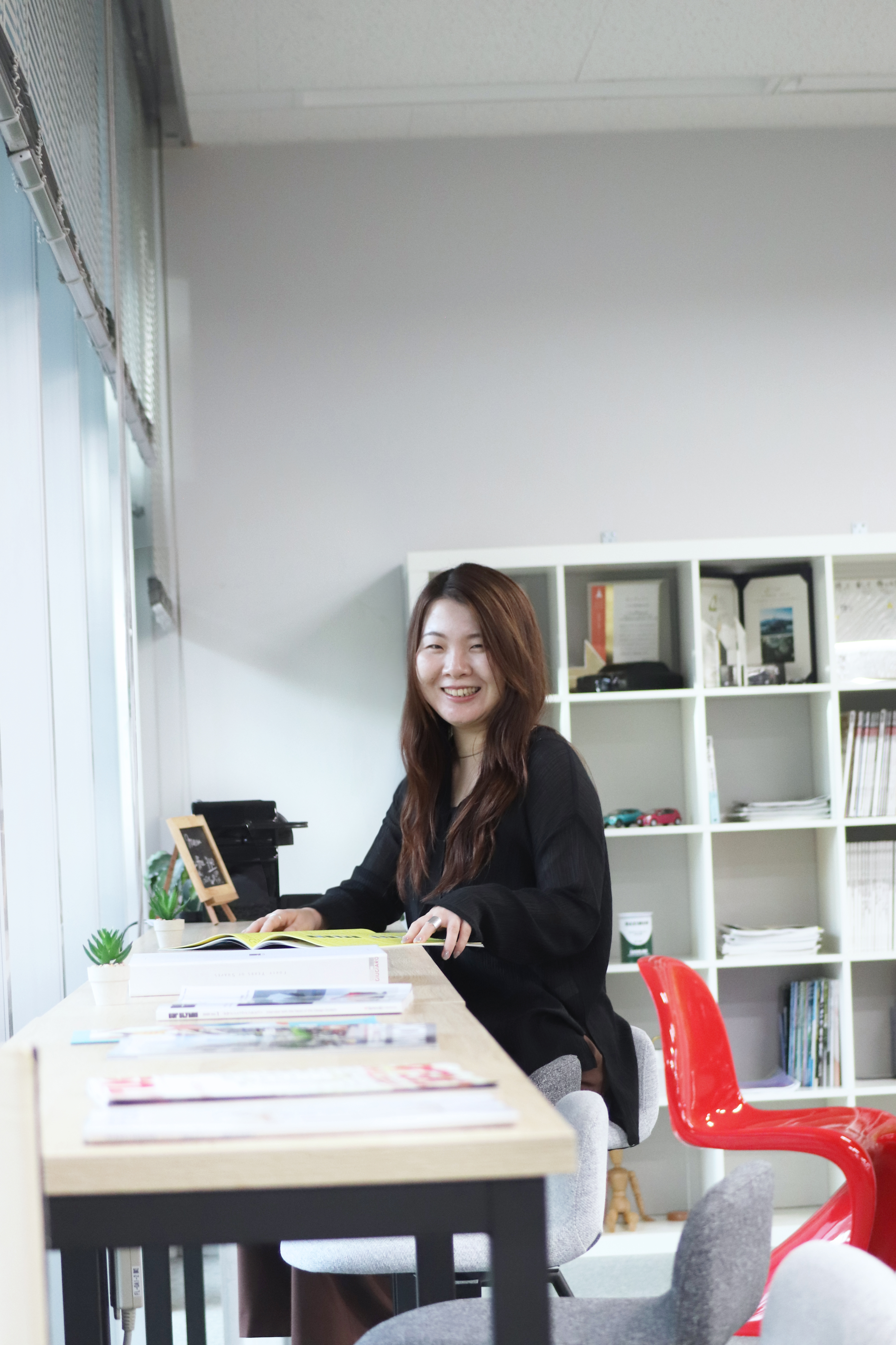 私はクルマのCMF(Color:色、Material:素材・Finish:仕上げ)のデザインをしています。クルマのコンセプトに基づき、お客様へどのような世界観・体験を提供するかを考え 、色や素材を開発し、外装・内装のコーディネートへと落とし込んでいく仕事です。入社後シエンタのCMFを担当、その後ヤリスやヤリスクロス、中国市場向けのクルマ を担当しました。現在はトヨタ自動車へ出向しグローバル市場に向けた次期プロジェクトを担当しています。